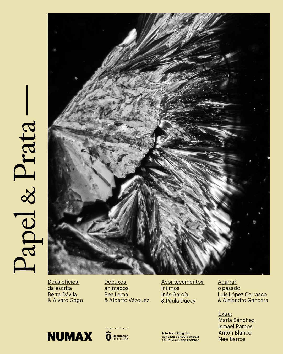 Este mes de abril arranca a actividade, PAPEL E PRATA, un ciclo de catro encontros e un EXTRA pensado arredor dos cruzamentos entre palabra e imaxe e deseñado, coordinado e desenvolto pola área de Libraría de NUMAX. Esta actividade traerá ao noso espazo a profesionais do cinema, da escrita e da divulgación como Berta Dávila, Álvaro Gago, Bea Lema, Alberto Vázquez, Inés García, Paula Ducay, Alejandro Gándara Porteiro, Luis López Carrasco, María Sánchez, Ismael Ramos, Antón Blanco e Nee Barros. Esta actividade está subvencionada pola Deputación da Coruña.