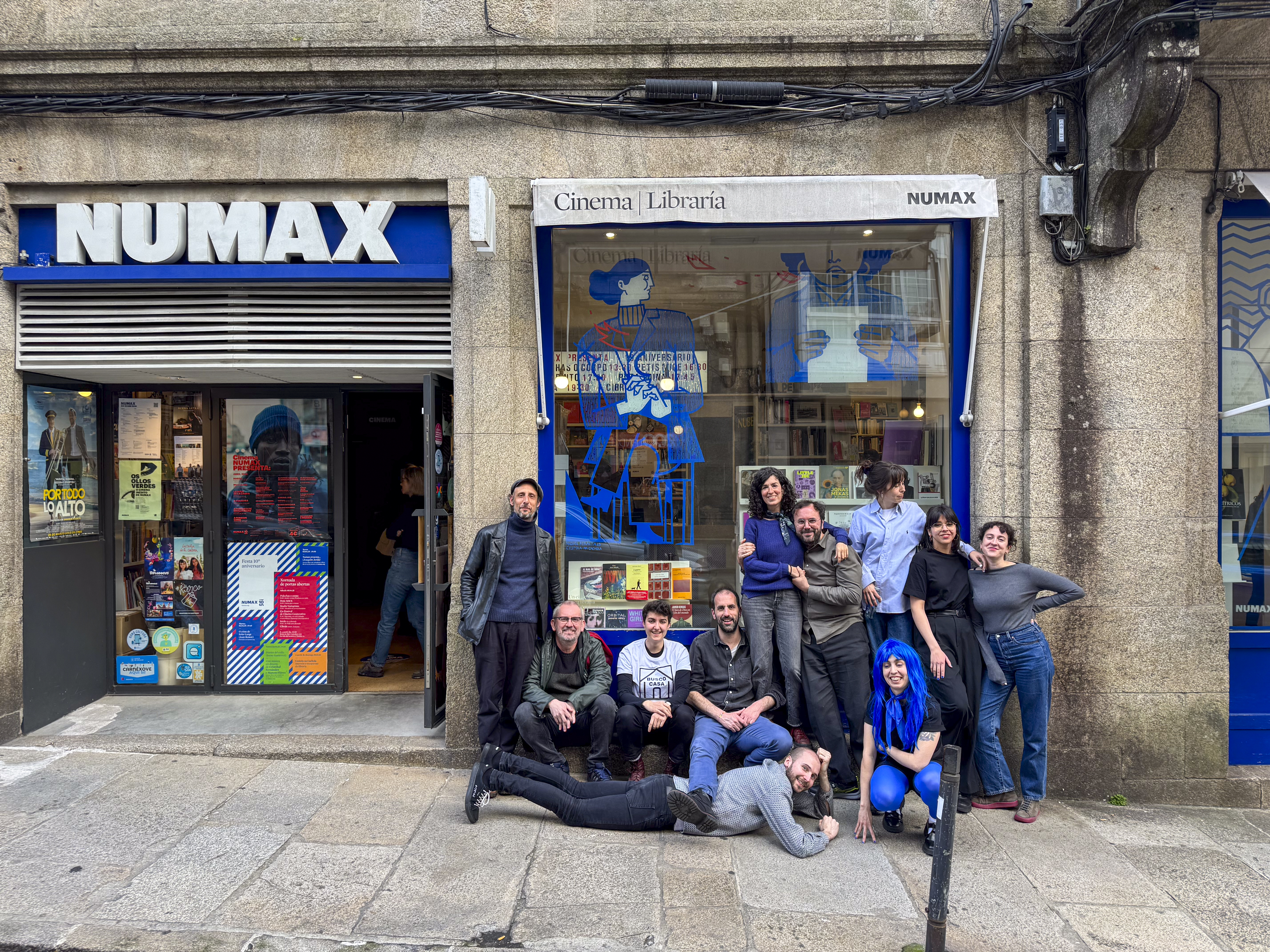 Na primavera de 2025 a cooperativa NUMAX cumpría 10 aniños e, para celebralo como a ocasión merecía, organizamos unha semana chea de actividades nas que tivo especial protagonismo a posta en valor da economía social e solidaria aproveitando tamén a celebración do Ano Internacional das Cooperativas. As nosas amigas de Cestola na Cachola levaron a cabo unha marabillosa intervención no noso escaparate a partir dos motivos do Numax presenta... de Joaquim Jordà. A semana culminou na xa habitual xornada festiva na que estivemos rodeadas de amigas e na que non faltou a música (Cristóbal Fernández, Marcos Flórez, Cibrán, Pídechas o corpo, La isla del tesoro DJ e Tonita DJ), o cinema (Jean Renoir, de novo Jordà, a MICE, Puta mina e o Co- Festival de Cinema Cooperatiu das compas de Zumzeig) e un obradoiro de postais a cargo de Studio Variopinto. Posdata: Ídevos preparando para o undécimo aniversario!